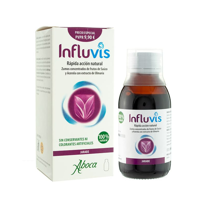 Influvis es un jarabe de rápida acción natural que ayuda a frenar los primeros síntomas de los estados gripales y catarrales, propios del invierno. Rápida acción natural. Zumos concentrados de frutos de Saúco y Acerola con extracto de Ulmaria.