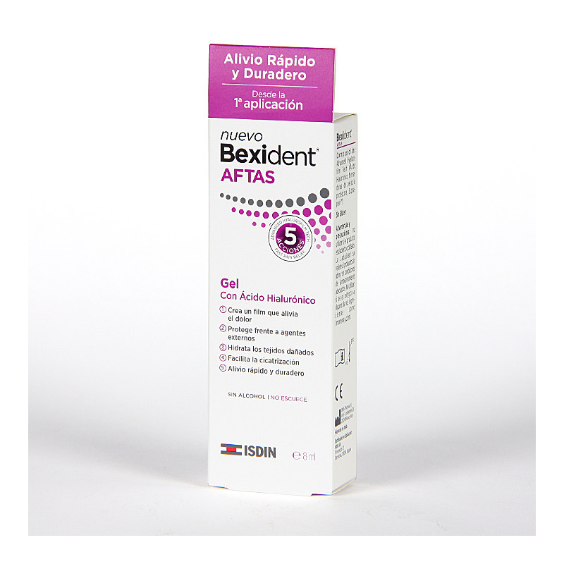 Bexident Aftas es un gel sin alcohol basado la tecnología Advanced Hyalurofilm Tech, que contiene ácido hialurónico y se encarga de la proteger y aliviar las aftas y úlceras bucales.