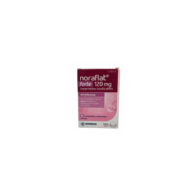 NORAFLAT FORTE , SIMETICONA NORMON 120 MG COMPRIMIDOS MASTICABLES alivio sintomático de los gases en adultos y adolescentes a partir de 12 años.