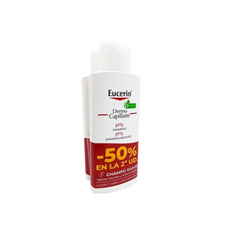 Pack Eucerin Dermo Capillaire champú ph 5 está indicado para el lavado diario del cuero cabelludo sensible. Eucerin respeta la piel, limpia e hidrata la piel respetando el ph de la piel.