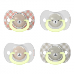 Set de Chupetes de Silicona diseñados para bebés de 0-6 meses, con Anilla Luminosa que simplifica la búsqueda en la oscuridad, evitando la necesidad de encender una luz.