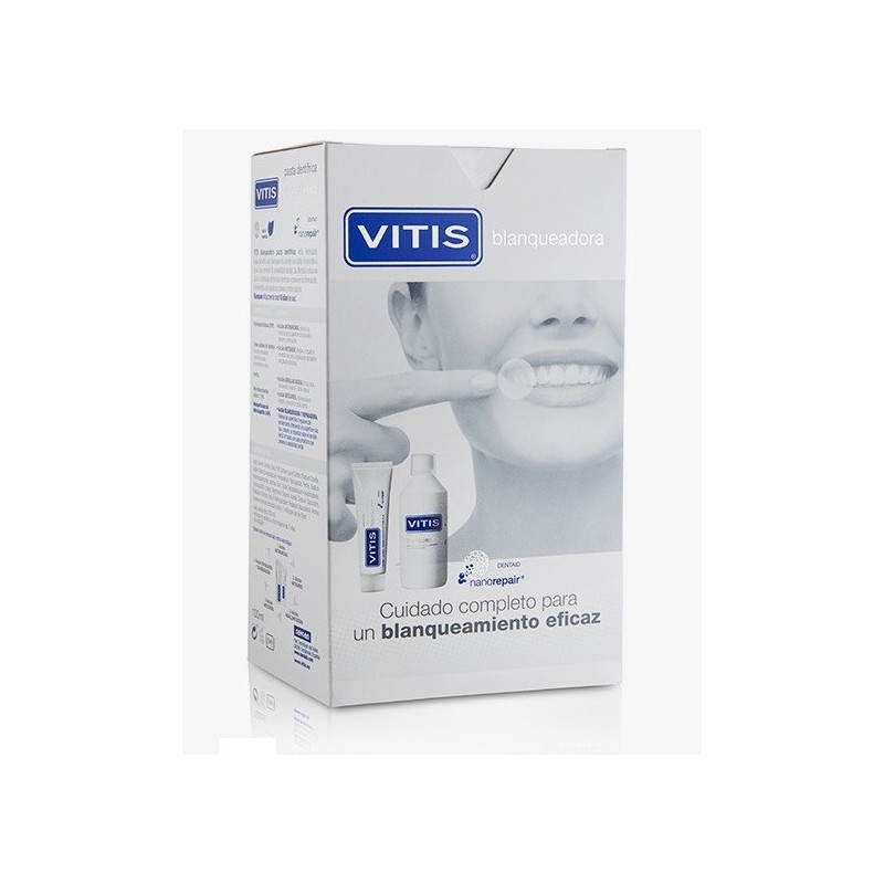 ¡Estupendo pack de colutorio y pasta dental Vitis Blanqueante! Lucir una sonrisa blanca y radiante ahora es posible gracias a los dos productos más revolucionarios de VITIS. Gracias a ellos conseguirás no sólo cuidar de tu salud bucal, sino lucir una sonrisa increíble.