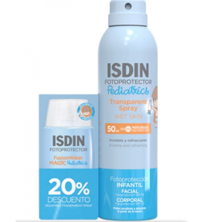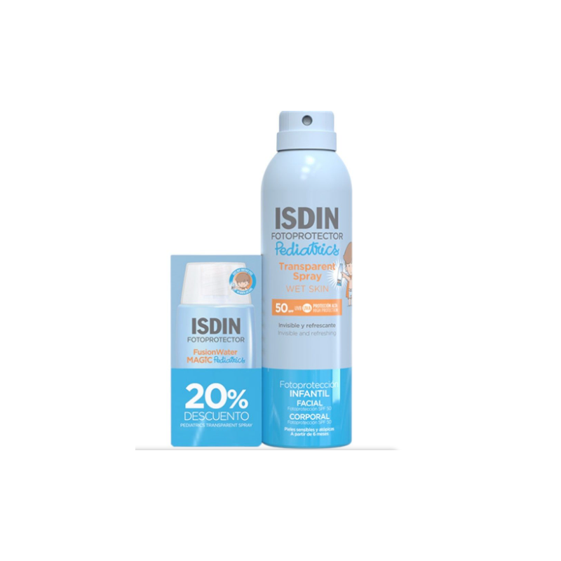 Protección solar completa para niños en un práctico pack que combina protector facial ultraligero y spray corporal transparente, ideal para proteger la piel infantil frente al sol de forma cómoda, rápida y eficaz.