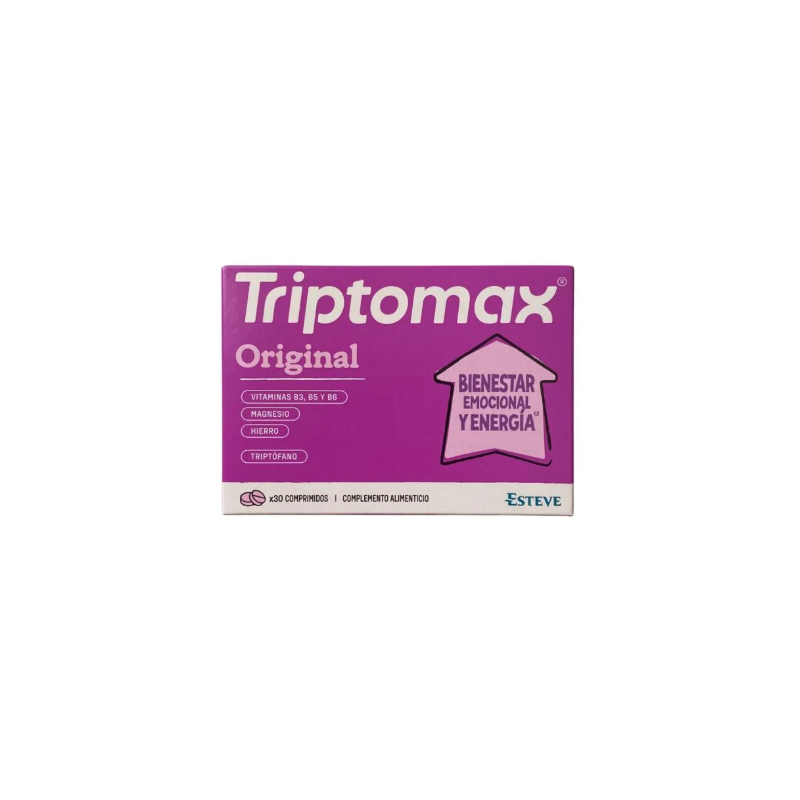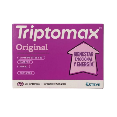 Triptomax es un complemento alimenticio elaborado a base de triptófano, un aminoácido esencial que actúa como regulador del estado de ánimo,vitaminas del grupo B, magnesio y hierro.
