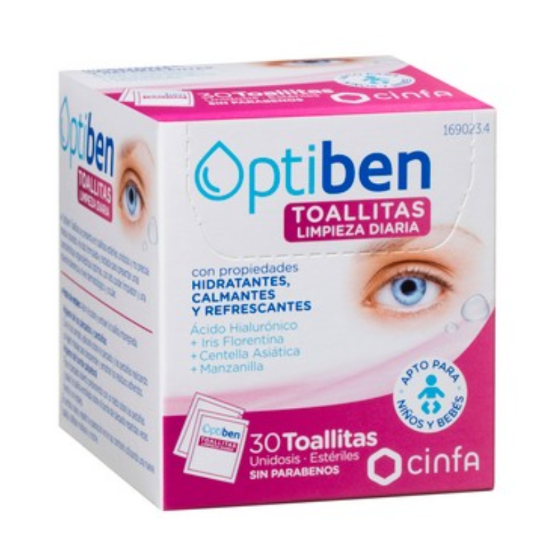 Las Toallitas Limpiadoras Optiben han sido elaboradas para ofrecer una limpieza óptima de párpados, pestañas y borde ocular para adultos, niños y bebés. Además, gracias a su formato en monodosis, podrás mantener tus ojos limpios e hidratados en todo momento.