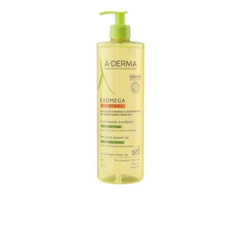 El aceite de ducha emoliente limpia y calma las pieles frágiles, secas y con tendencia a eczemas atópicos. Inmediatamente después de su aplicación, el 100% de la piel se calma.