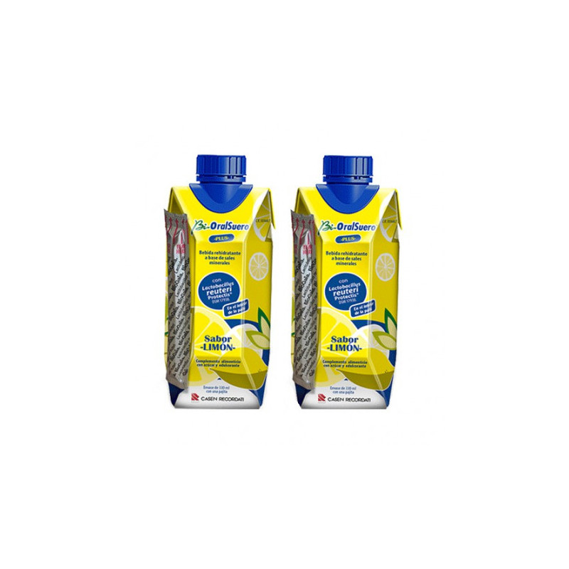 Bioralsuero plus es un complemento alimenticio indicado para rehidratar el organismo en casos de deshidratación que tienen su origen en estados diarreicos. Especialmente creado para adultos, no contiene ni gluten ni lactosa y tiene sabor a limón. Además, es la única bebida rehidratante que contiene Lactobacillus Reuteri Protectis. El probiótico viene incorporado en el interior de la pajita que viene junto al brick, por lo que al aspirar el liquido arrastramos el Lactobacillus y lo consumimos.