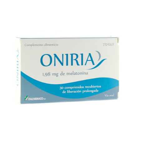 Oniria 1,98mg Melatonina es un complemento alimenticio con melatonina que ayuda a dormir y favorece el descanso.