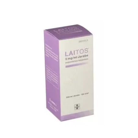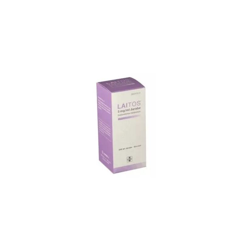 Jarabe para la tos. Laitos es un medicamento que está indicado para tratar la tos (tos nerviosa, tos irritativa) que no vaya acompanyada de expectoración. Laitos contiene dextrometorfano. El dextrometorfano es un antitusivo que inhibe el reflejo de la tos. Laitos se administra vía oral. Laitos es un jarabe incoloro, con olor y sabor a fresa. Presentación en frasco de 200 ml.